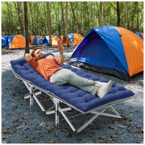 Cama Dobrável Portátil para Acampamento com Acolchoado 2 Unidades Suporta 408 kg ABORON Azul Marinho