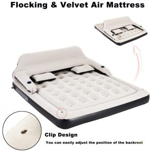 Colchão Inflável Casal Queen com Bomba Embutida Travesseiro e Encosto Para até 200KG RAPTAVIS Bege