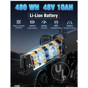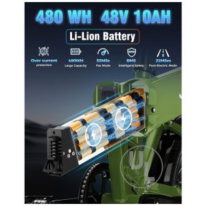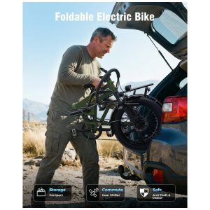 Bicicleta elétrica dobrável Jasion Hunter Pro preto anoitecer pneu grosso 20″ motor 1000W pico 1800W bateria 48V 15Ah até 128 km 110V