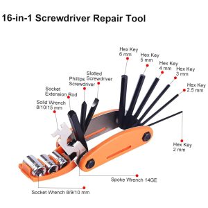 Kit de Reparo Emergencial de Bicicleta 16 Funções WOTOW Preto
