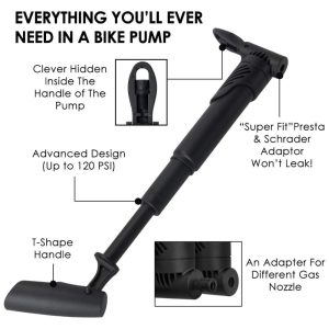 TOOLITIN Bomba de Piso Ergonômica para Bicicleta com Medidor e Válvula Inteligente 120 PSI Preto