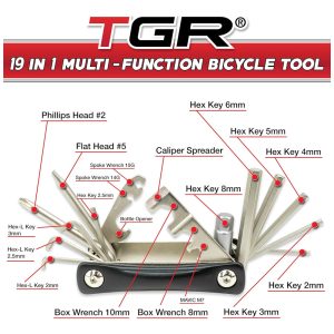 Kit de Reparo Emergencial de Bicicleta 19 Funções TGR HT 2335 Preto