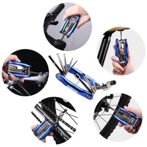 Kit de Reparo Emergencial de Bicicleta e Bolsa de Transporte 10 Funções YBEKI Azul