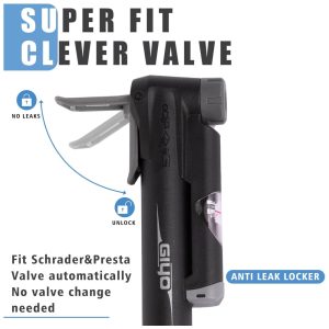 Bomba de Piso Ergonômica para Bicicleta com Medidor e Válvula Inteligente 120 PSI GIYO Preto