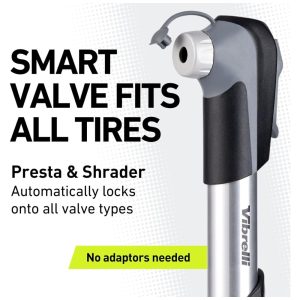 Mini Bomba de Ar Portátil 120 PSI para Bicicleta com Adesivos de Reparo e sem Necessidade de Troca de Válvula VIBRELLI Preto