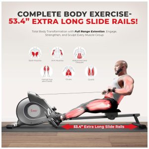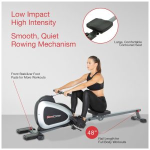 Aparelho Remador Magnético com Bluetooth para Treino em Casa SUNNY HEALTH FITNESS Cinza