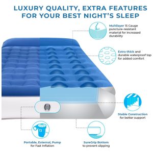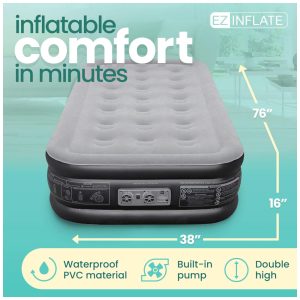 Cama Colchão Inflável Cama Bomba de Ar Embutida Luxo Duplo Altura 40 de Altura EZ INFLATE Preto