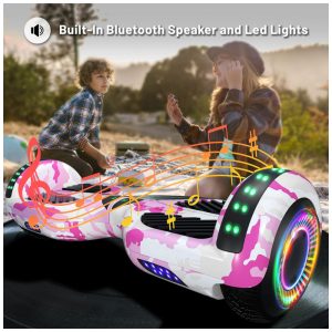 Hoverboard SIMATE Bluetooth com Luzes de LED e Controle de APP Presente para Crianças e Adultos para Todas as Idades – Rosa Camuflagem
