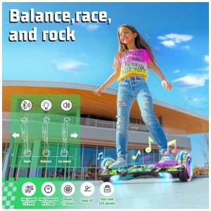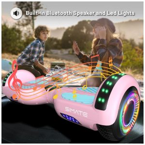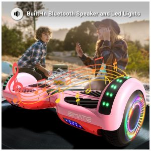 Hoverboard SIMATE com Bluetooth Luzes de LED e Controle via APP – Presente para Crianças e Adultos para Todas as Idades – Rosa e Azul