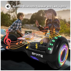 Hoverboard SIMATE Preto 65″ com Bluetooth Luzes LED e Certificação UL2272 – Até 137 km/h Autonomia de 128 km