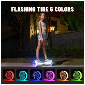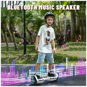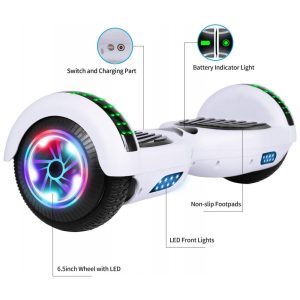 Hoverboard SIMATE Branco 65″ com Luzes LED Bluetooth e Certificação UL2272 – Até 137 km/h Autonomia de 128 km