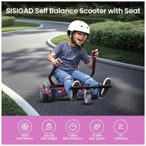 SIMATE Go Kart Branco para Hoverboard 65″ a 10″ – Assento Ergonômico Estrutura Ajustável Compatível com Diversos Modelos