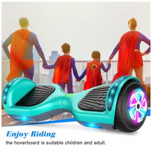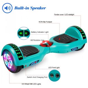 Hoverboard Elétrico Verde-Água 65” Autoequilibrado Bluetooth LED Motor 350W Alcance 16 km Velocidade 16 km/h