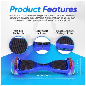 Hoverboard GYROOR G13 65″ All Terrain Preto com LED Bluetooth Motores Duplos 250 W até ~12 km/h – Certificação UL2272 Azul