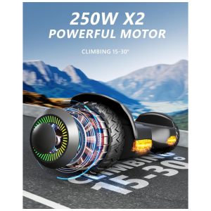 Hoverboard SIMATE com Luzes de LED Coloridas Alto-falantes Bluetooth e App Motores Duplos de 250W Velocidade Máxima de 137 km/h