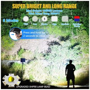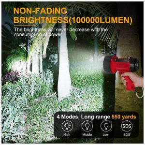 Lanterna LED Recarregável 9 Horas de Ação á Prova Dágua IP67 e 100.000 Lúmens YIERBLUE Vermelha