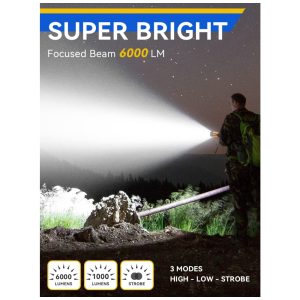 Lanterna LED CREE XHP Spotlight 6000 Lúmens Carregador Incluído à Prova Dágua Saída USB