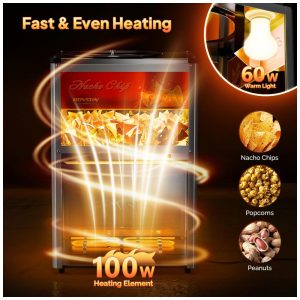 Aquecedor de Nachos e Snacks Olde Midway Prata Inox Comercial com Porta de Vidro e Colher 120V