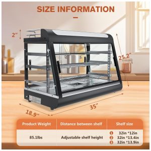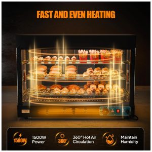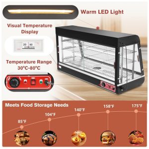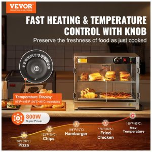 Expositor Aquecedor de Alimentos VEVOR Cinza 2 Níveis 61 cm com Iluminação e Capacidade 58L 220V.