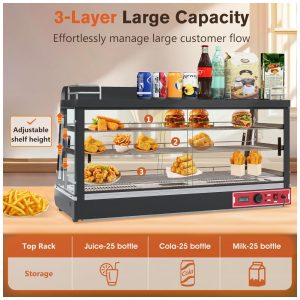 Expositor Aquecedor de Alimentos Comercial Anpuce Preto 3 Prateleiras com Rack Superior 112 cm 110V