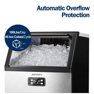 Máquina de Gelo Profissional Produz 45kg Dia 45 Cubos 12 18min Aço Inox 110v E EUHOMY Prateado