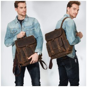 Mochila Vintage de Couro para Laptop Masculina BOSTANTEN Marrom