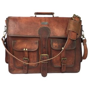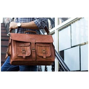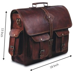 Bolsa Carteiro Masculina Couro de Búfalo para Laptop com 18 Polegadas Komal s Passion Leather Marrom