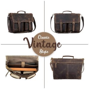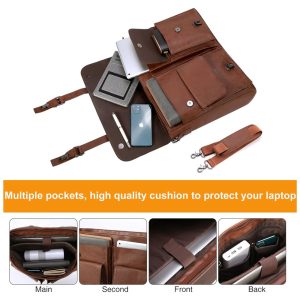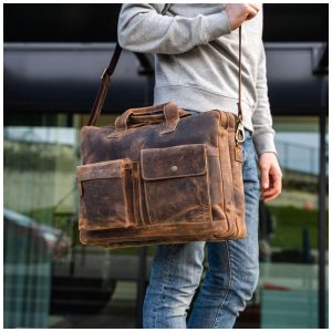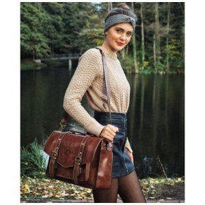 Bolsa Maleta de Couro Unissex para Laptop RUSTIC TOWN Marrom