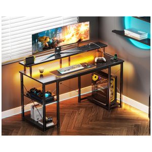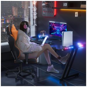 Mesa Gamer Tomadas Elétricas e Luzes LED. Suporte p Monitor e Jogos. ODK