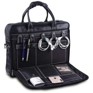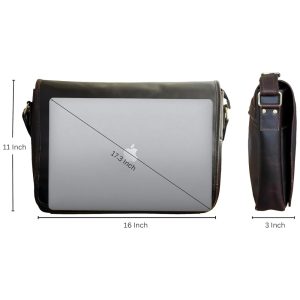 Bolsa Carteiro Masculina de Couro Grão Integral para Laptop com 17 Polegadas Masa Kawa Preta