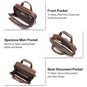 Bolsa Maleta de Couro Masculina para Laptop SEYFOCNIA Marrom