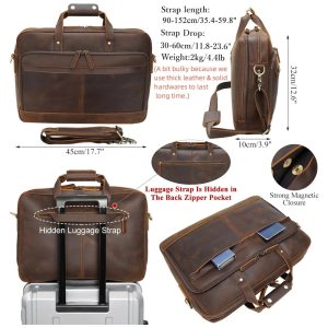 Bolsa Carteiro Masculina de Couro Bovino para Laptop com 17 Polegadas TIDING Marrom