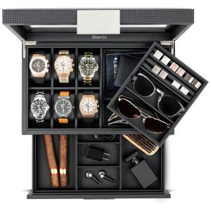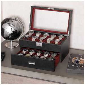 Caixa Estojo de Fibra de Carbono para Relógios com 24 Compartimentos Glenor Co Preto