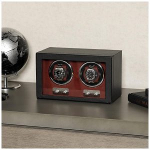 Caixa Estojo de Couro Rotativo Automático para Relógios 2 Lugares ROTHWEL Preto e Vermelho