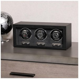 Caixa Estojo Rotativo Automático para Relógios 3 Lugares ROTHWELL Preto e Cinza