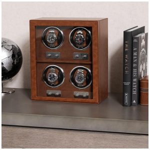 Caixa Estojo de Couro Rotativo Automático para Relógios 4 Lugares ROTHWEL Marrom