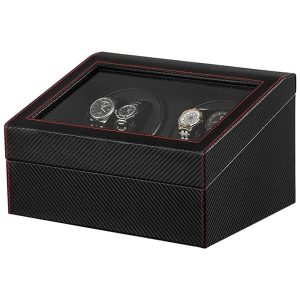 Caixa Estojo Rotativo Automático de Couro para Relógios 4 Lugares J T Technology Preto