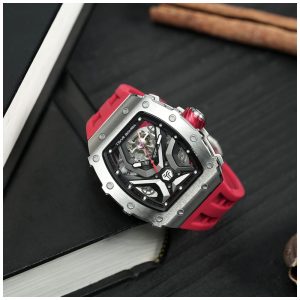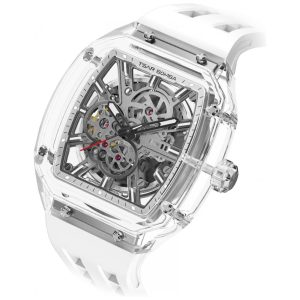 TSAR BOMBA Relógio Automático Masculino à Prova d’Água 50M Design Tonneau Luxuoso com Mecanismo Esqueleto e Pulseira de Silicone