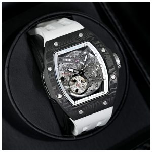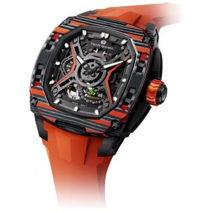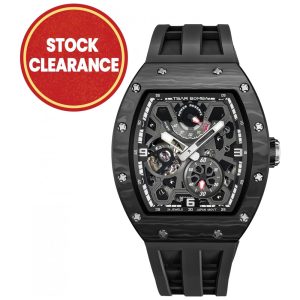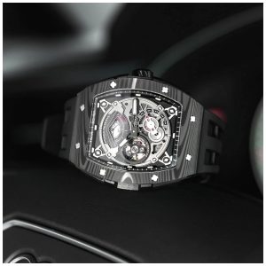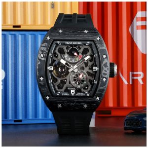 TSAR BOMBA Relógio Mecânico de Luxo Masculino com Caixa em Fibra de Carbono Pulseira de Borracha Fluorada e Resistência à Água 5ATM