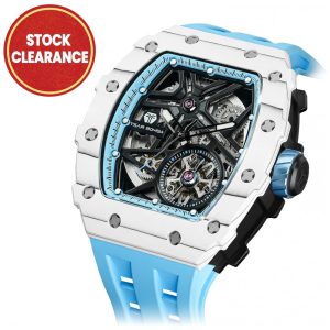 TSAR BOMBA Relógio Masculino Automático Luxo com Bisel em Fibra de Carbono e Cerâmica Vidro de Safira e 50M à Prova d’Água