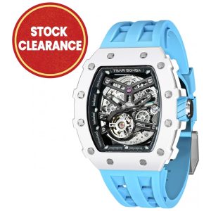 TSAR BOMBA Relógio Masculino Automático 50M à Prova d’Água Design Skeleton e Pulseira de Silicone Confortável