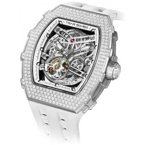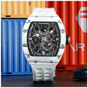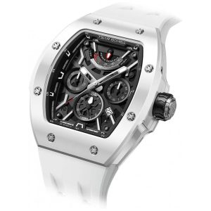 TSAR BOMBA Relógio Automático Masculino Luxuoso Tonneau Mecânico Edição Cerâmica Completa 8222 22C Branco