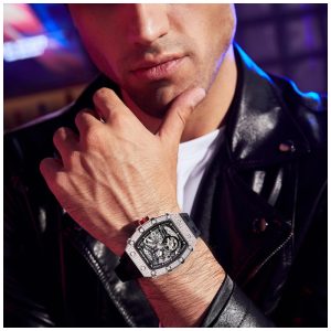 TSAR BOMBA Relógio Masculino Automático Mecânico Skeleton com Mostrador Grande e Cristal de Safira Luminoso