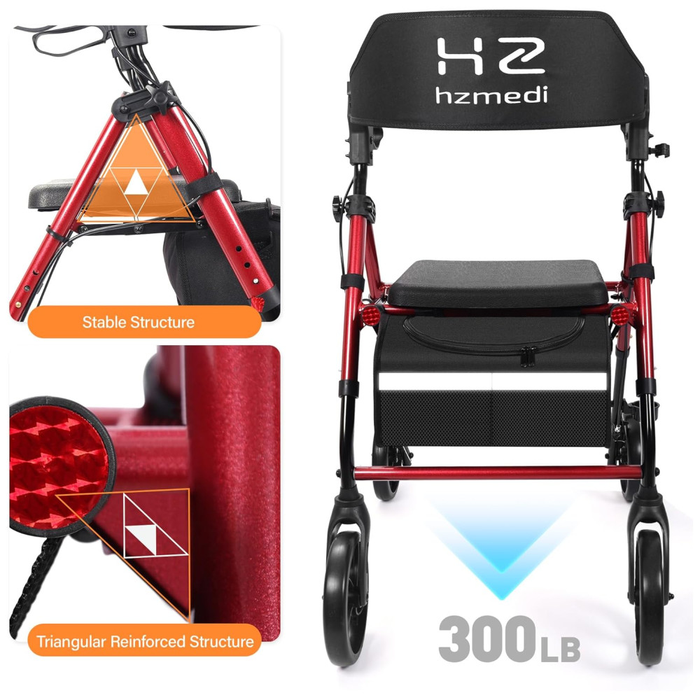 Andador com Assento para Idosos, Dobrável em Alumínio, Rodas de 20cm Ajustáveis, Ideal para Adultos em Mobilidade,HZ HZMEDI