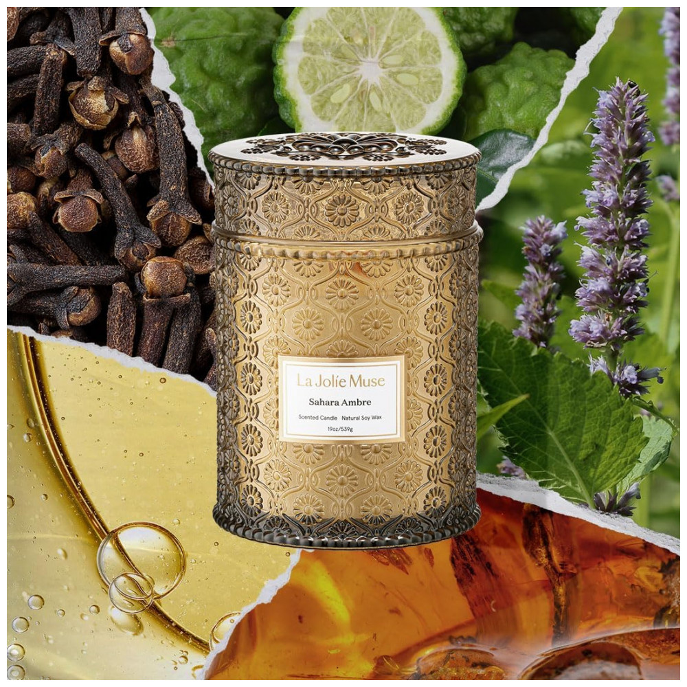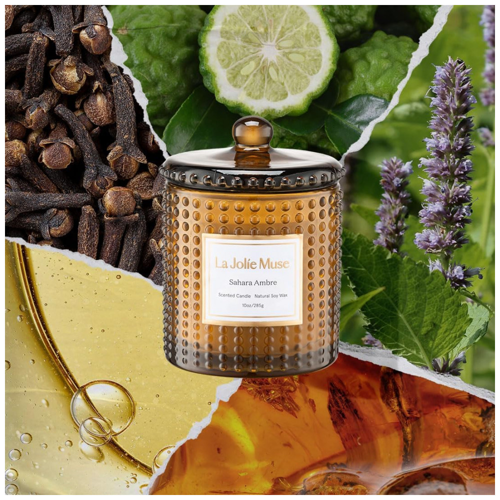 Vela LA JOLIE MUSE Fall Candle Sahara Amber – 10 oz de Cera de Soja Natural – Fragrância de Outono – Limpeza e Conforto para Noites Aconchegantes – De