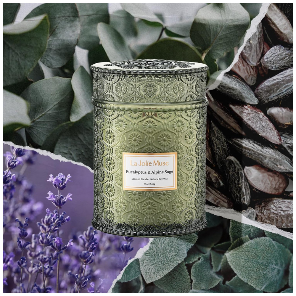 Vela LA JOLIE MUSE Eucalyptus Alpine Sage com Pavio de Madeira 19 oz de Cera de Soja Natural para 90 Horas de Relaxamento