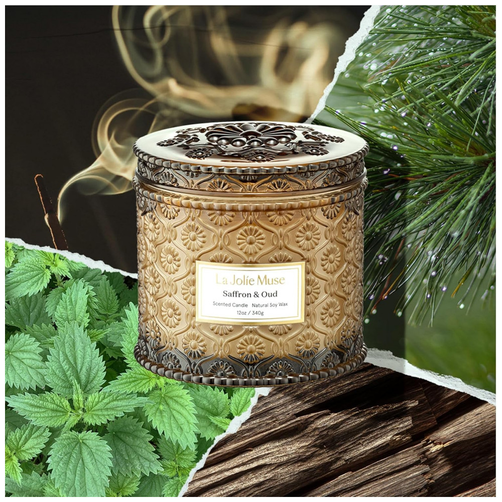 Vela de Cera de Soja LA JOLIE MUSE Saffron Oud 340g, 2 Pavios, 60 Horas de Queima Limpa – Presente Sofisticado para Anfitriões e Decoração de Casa Ele