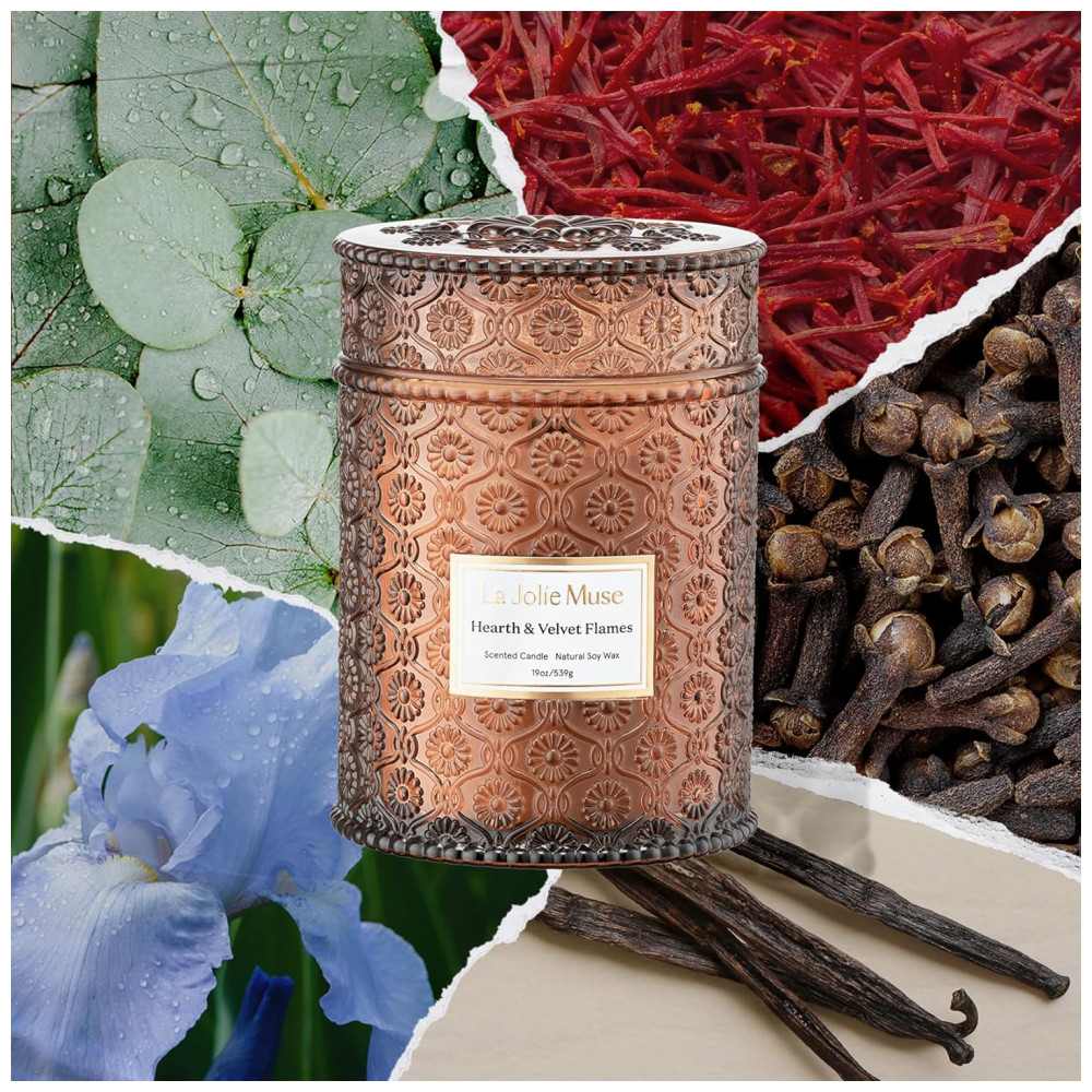 Vela de Veludo Hearth Velvet Flames da LA JOLIE MUSE – Aromas de Açafrão, Cravo e Baunilha – 539 g – Pavio de Madeira – Cera de Soja Natural – 90 Hora