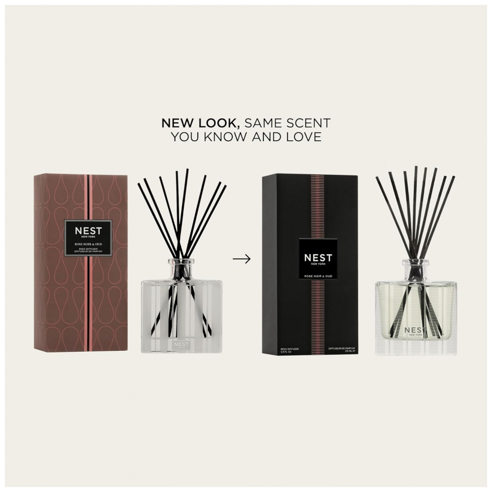 Difusor de Varetas NEST New York, Rose Noir Oud 175 ml – Fragrância por até 90 dias – Vidro Reutilizável e Recarregável com 8 Varetas de Rattan 100% N