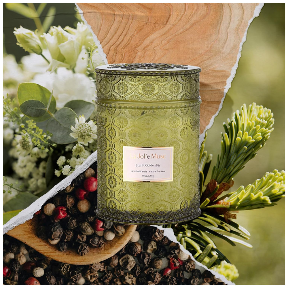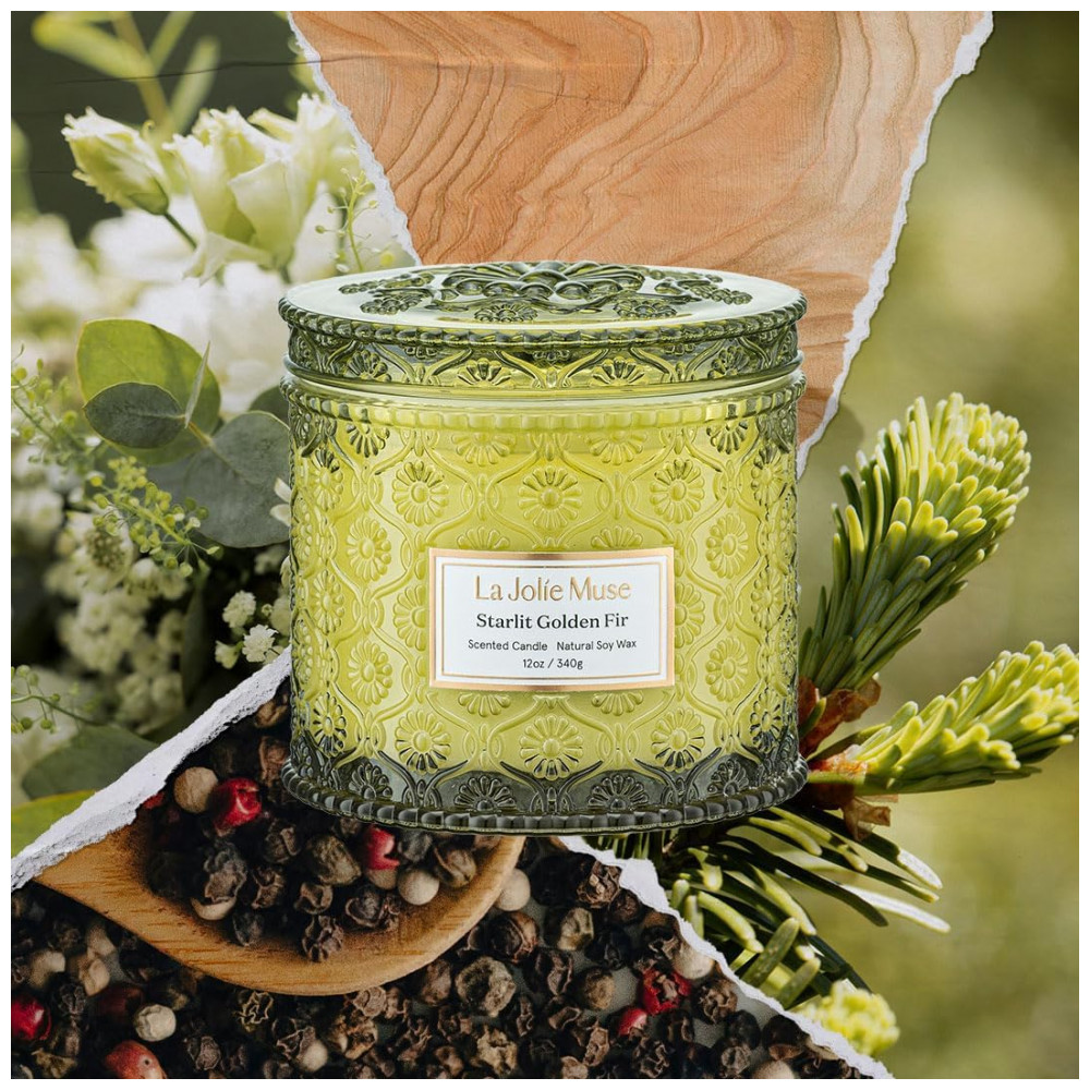 Vela LA JOLIE MUSE Starlit Golden Fir de Cedro, Patchouli e Bálsamo de Pinheiro 170g Cera de Soja Natural Queima Limpa 40 Horas Presente de Vela de Bá